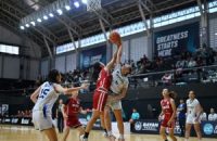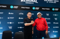 Pelatih Wellyanto Pribadi bersama kapten tim putri Mayviana Lysandra Tandiono saat sesi post match interview Campus League Basketball Regional Surabaya 2026…