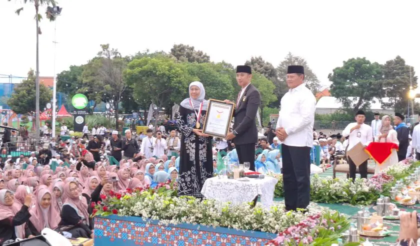 Surabaya (Trigger.id) – Gubernur Jawa Timur Khofifah Indar Parawansa menerima piagam penghargaan dari Museum Rekor-Dunia Indonesia (MURI) dalam acara “Buka Puasa dan Hadiah Kurma Raja Salman” yang digelar di Masjid Nasional Al-Akbar, Sabtu (21/2/2026).